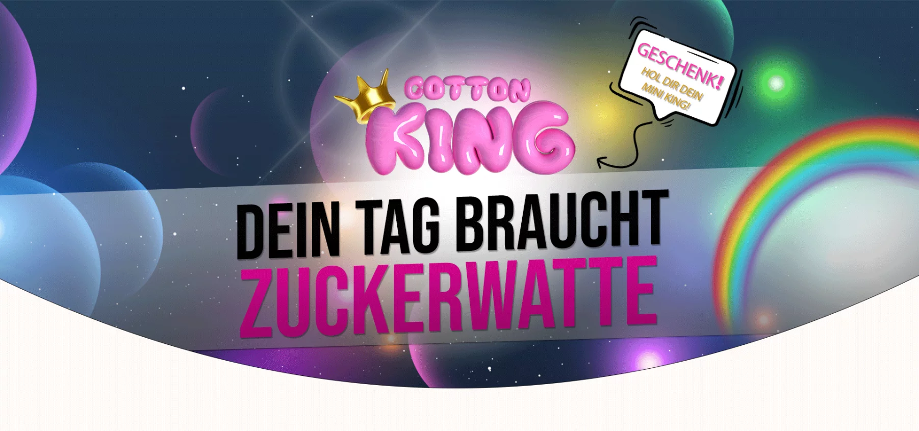 Im Reich der CottenKings gibt es keine Langeweile – nur Farben, Fantasie und den Duft frisch gedrehter Zuckerwatte. Jeder König entsteht aus feinen, schwebenden Zuckerfäden, die sich zu einer weichen, majestätischen Kugel formen. Gekrönt mit einer goldenen Krone und grossen neugierigen Augen.